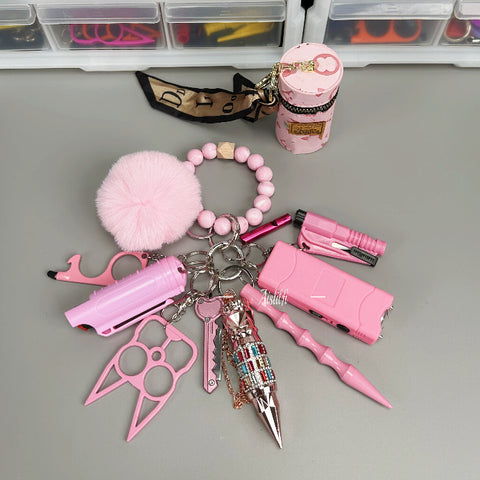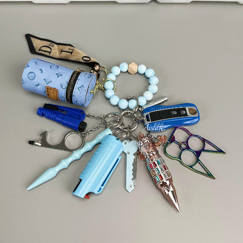 12 Stück Original-Perlenarmband-Selbstverteidigungs-Schlüsselanhänger - Orange
