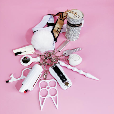 13 Stück Selbstverteidigungs-Schlüsselanhänger mit hängendem Seil - Weiß