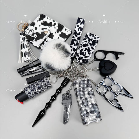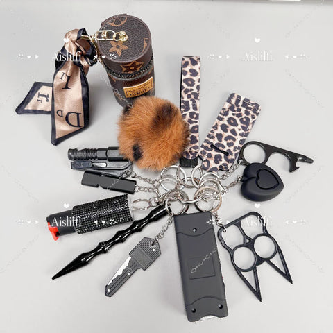 13-Piece Women's Self-Defense Keychain Kit - leopard print