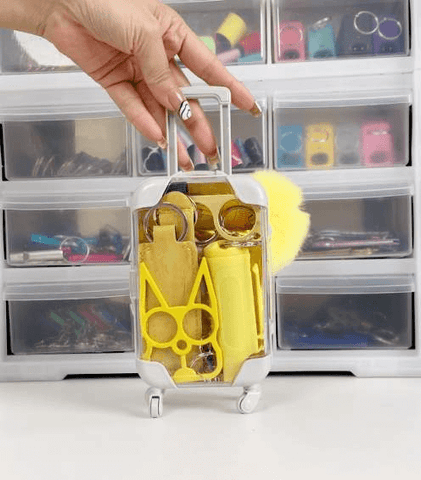 Sprayer, Kubaton, Cat Ears, Door Opener, Whistle, Key Knife, Window Breaker, PomPom, Wrist Band, Lipstick Holder, Mini suitcase