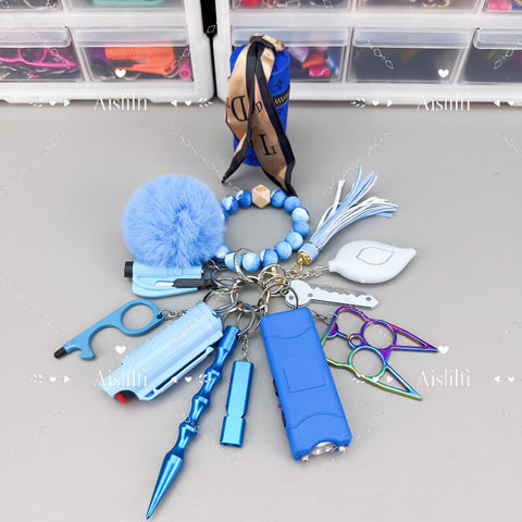 New Beaded Bracelet Self Defense Keychain Kit - Teal and hot pink